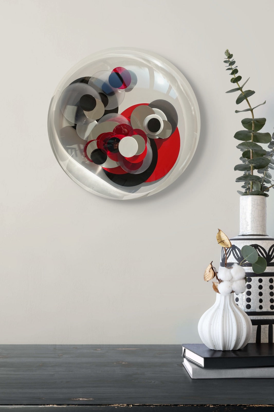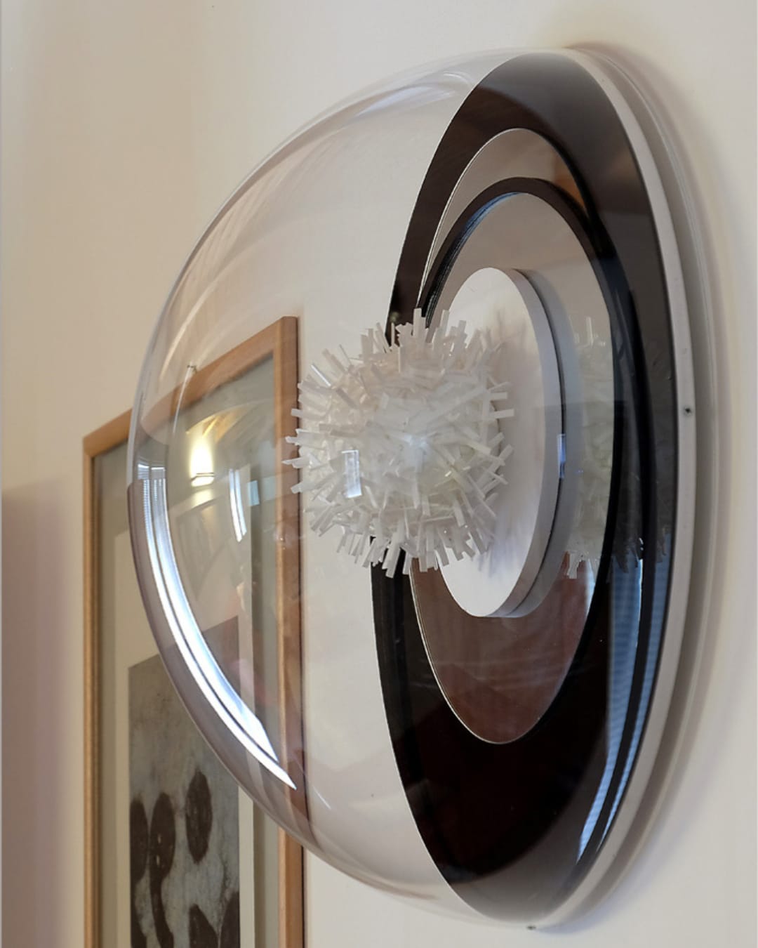 Le Sphere sono forme trasparenti che racchiudono al loro interno un universo cromatico in continua trasformazione. Semisfere astratte pensate per dialogare con la luce naturale e con lo spazio che le accoglie, generando riflessi, bagliori e ombre che mutano nel corso della giornata. Nascono in relazione allo spazio in cui verranno collocate, alla luce e al contesto abitativo.