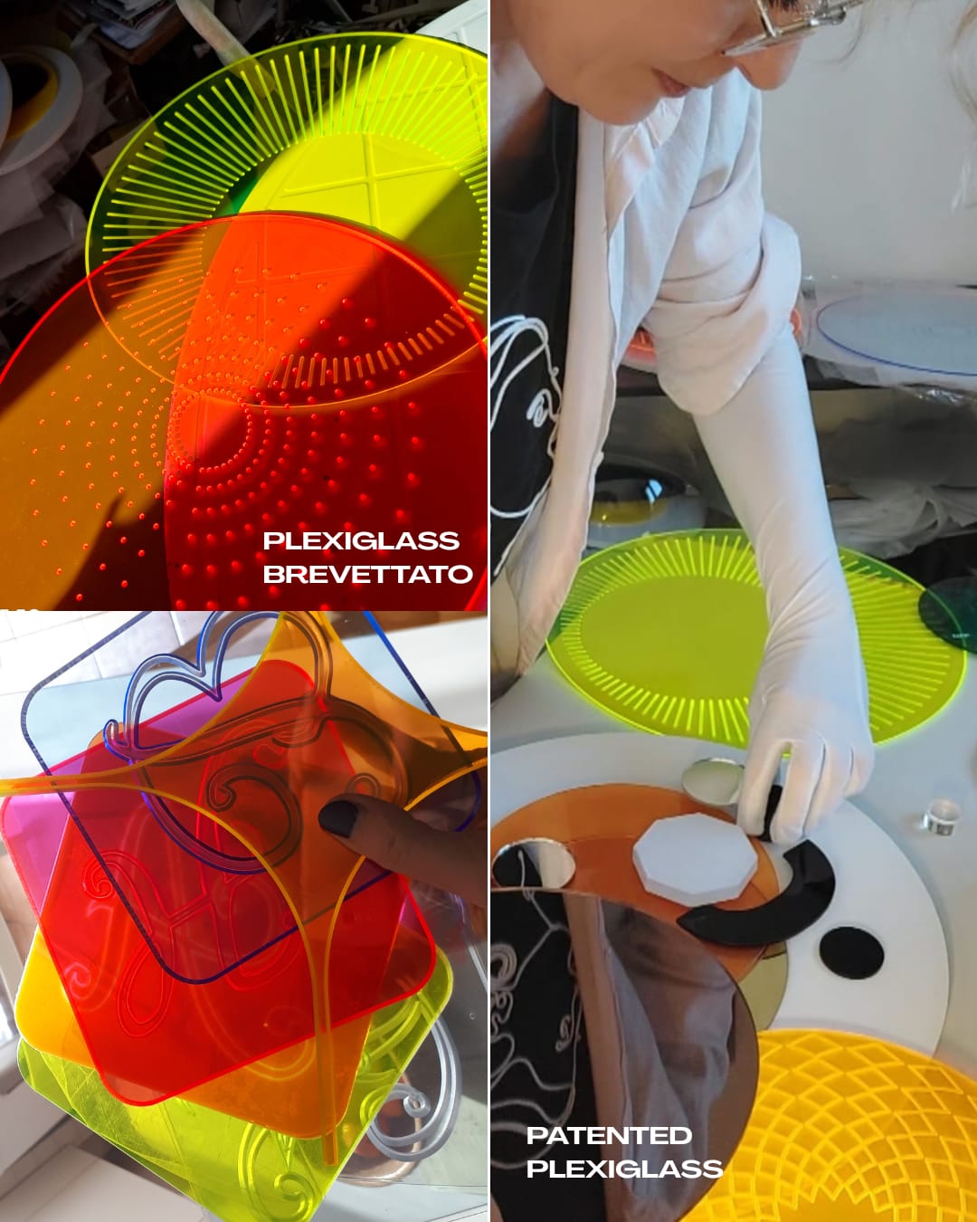 Opere scultoree in plexiglass trasparente progettate per dialogare con luce e spazio.