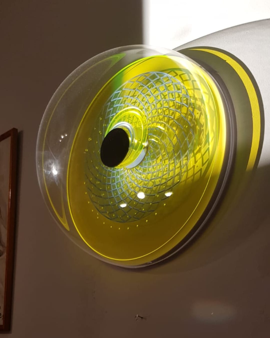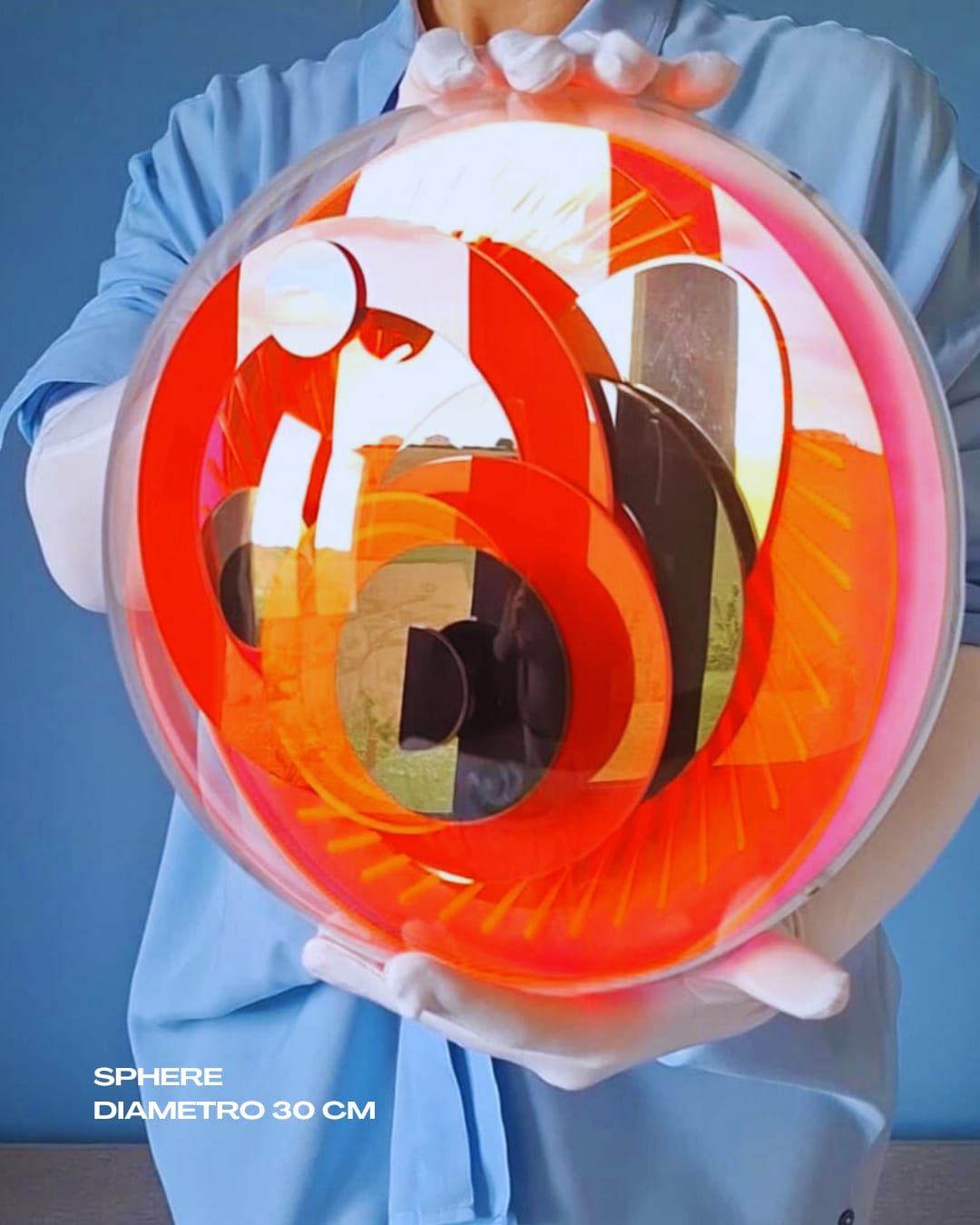 Questo progetto nasce dal desiderio di rendere visibile l’energia della luce e di trasformarla in esperienza sensoriale. Le Sphere non sono semplici oggetti decorativi, ma presenze capaci di modificare la percezione dell’ambiente, introducendo una dimensione poetica fatta di movimento, colore e silenziosa contemplazione. Ogni Sphere è realizzata interamente a mano ed esiste come pezzo unico, già collocato o progettato per spazi specifici. Le dimensioni variano da forme più contenute a cupole di grande impatto visivo. È possibile commissionare un’opera scegliendo una palette cromatica specifica oppure affidarsi all’intuito creativo dell’artista, lasciando che l’opera prenda forma in modo spontaneo e irripetibile.