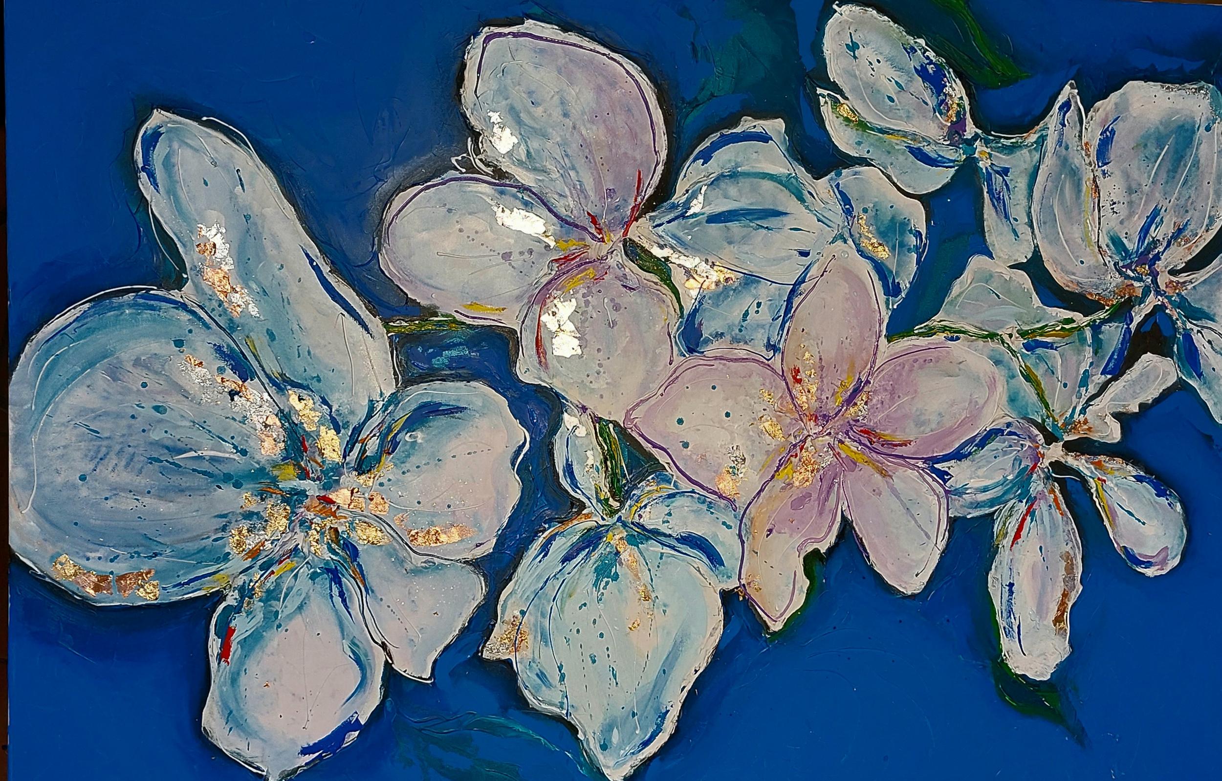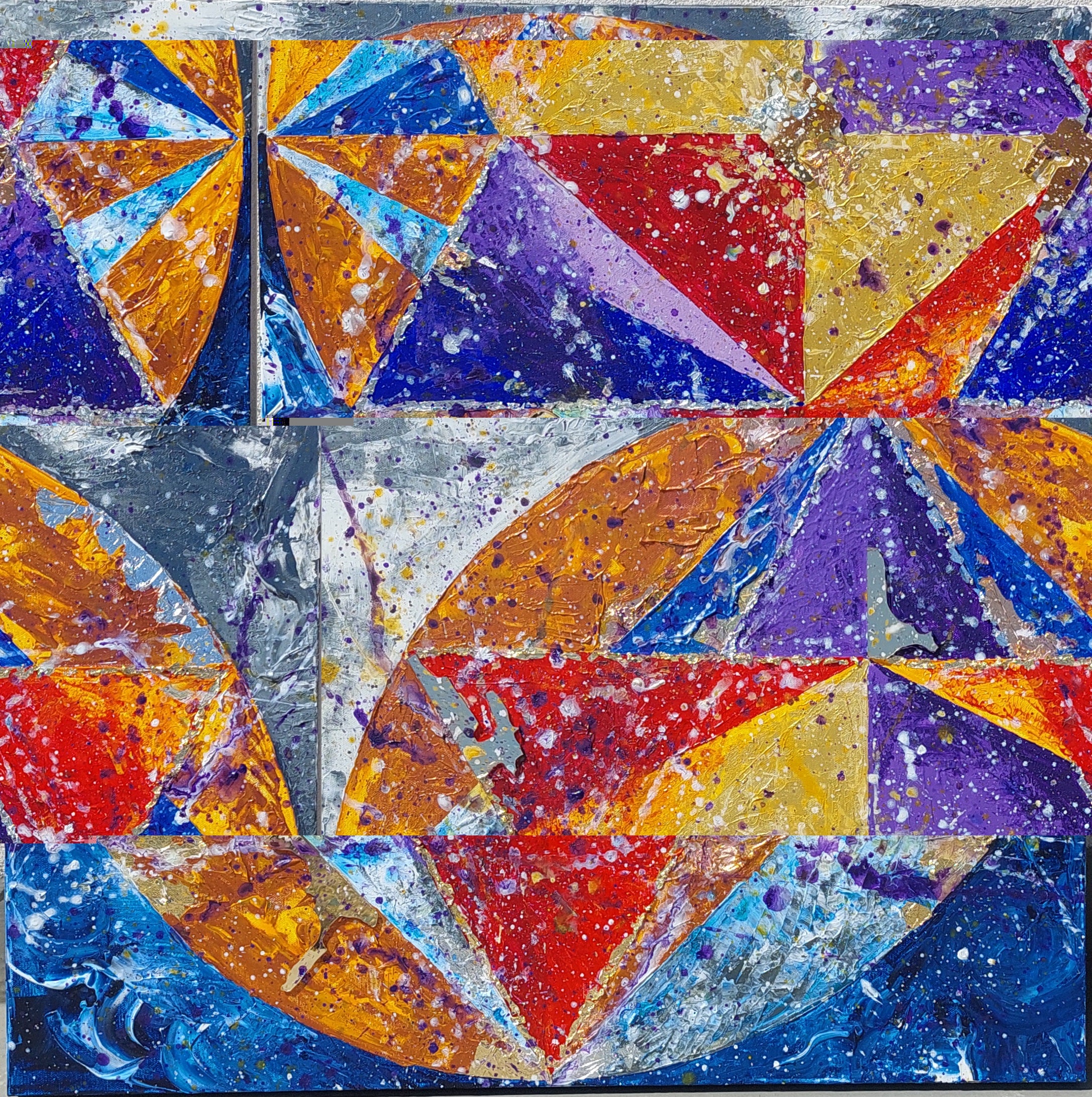 Il lavoro pittorico esplora le profondità dell’animo umano, dando forma a stati emotivi, tensioni interiori ed energie in continuo mutamento. La materia è parte integrante di questo processo: oli, tempere e inserti di foglia d’oro, d’argento e di rame costruiscono superfici stratificate e vibranti, attraversate da luce, movimento e profondità.