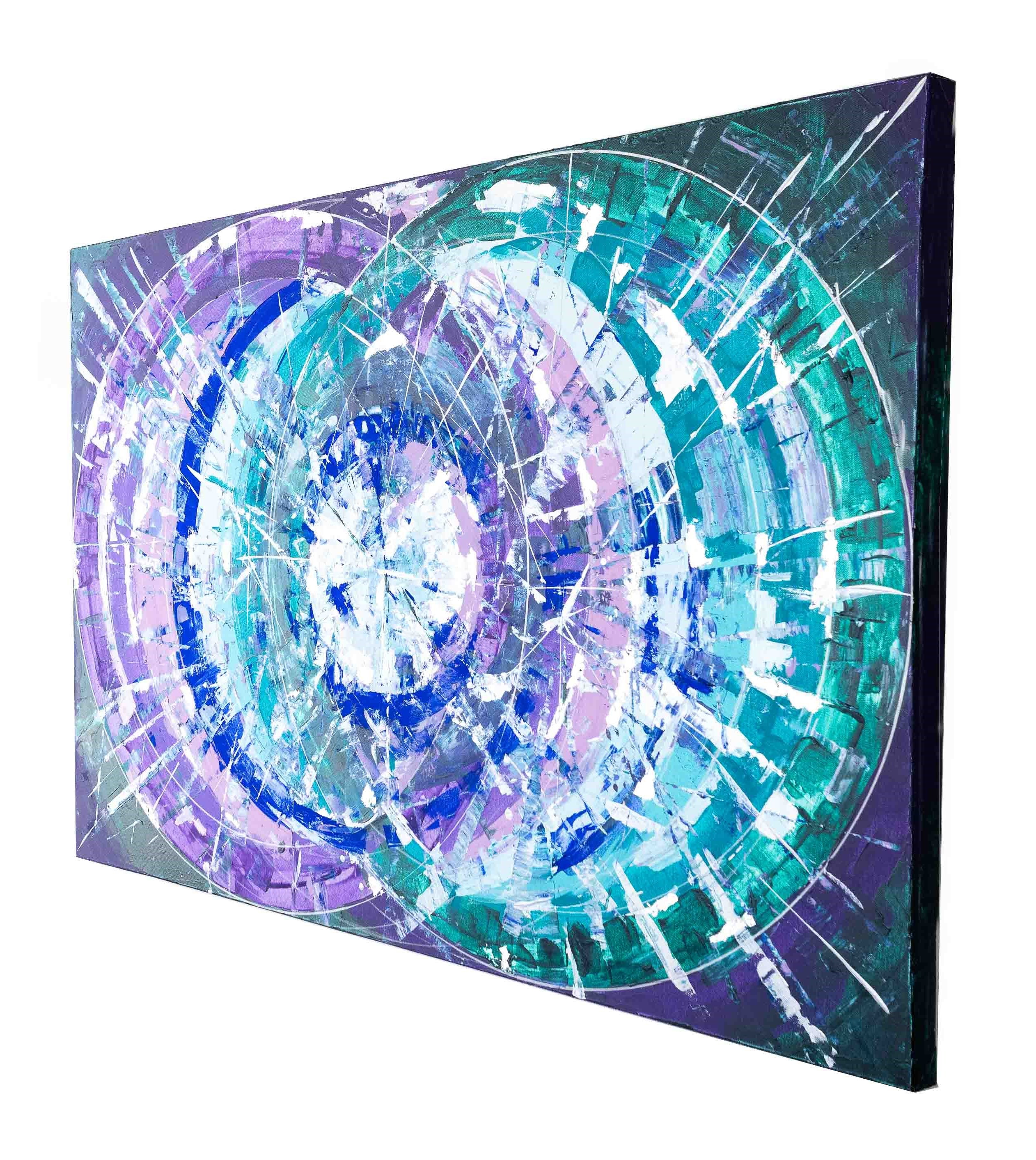I cerchi centrali, in rotazione, evocano l’essenza della famiglia e delle relazioni primarie. Le intersezioni generano nuovi punti di connessione, mentre le foglie d’argento riflettono la luce e amplificano la percezione di profondità, rendendo l’opera dinamica e viva nello spazio.