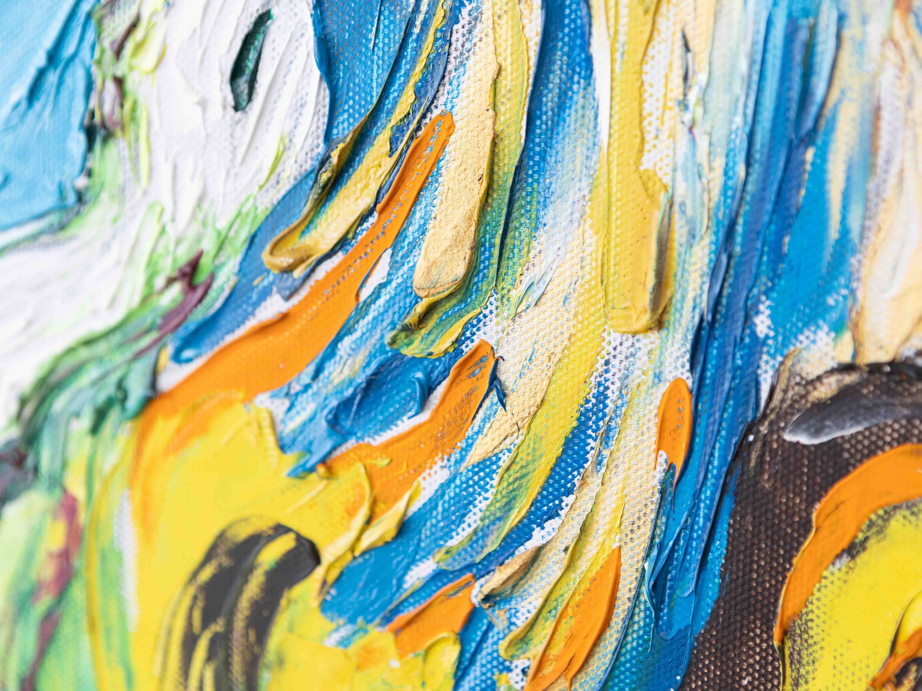 Magic Birds nasce da uno stato di pura gioia e leggerezza. L’opera traduce un’esplosione emotiva in colore e movimento, come se le sensazioni prendessero forma sulla tela.