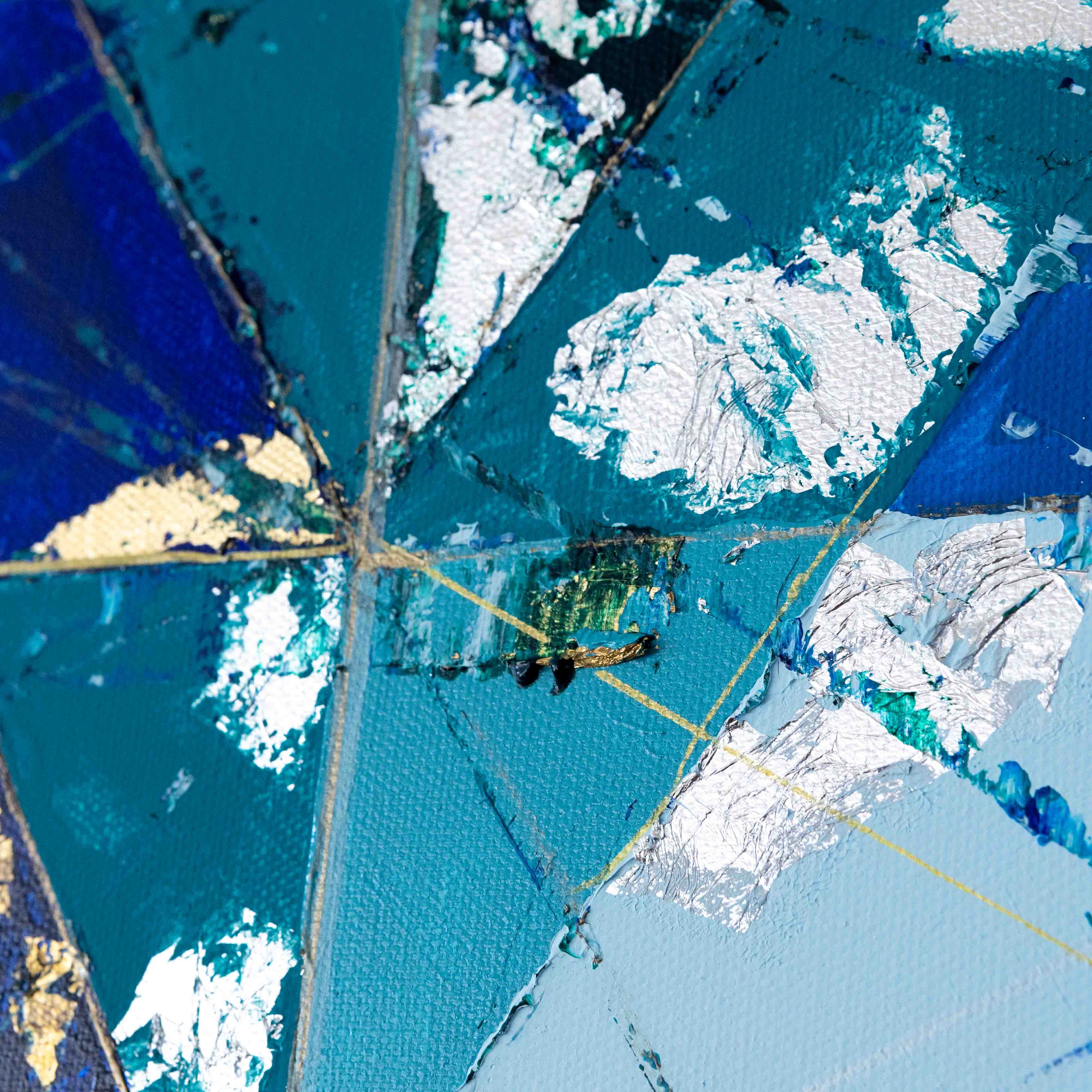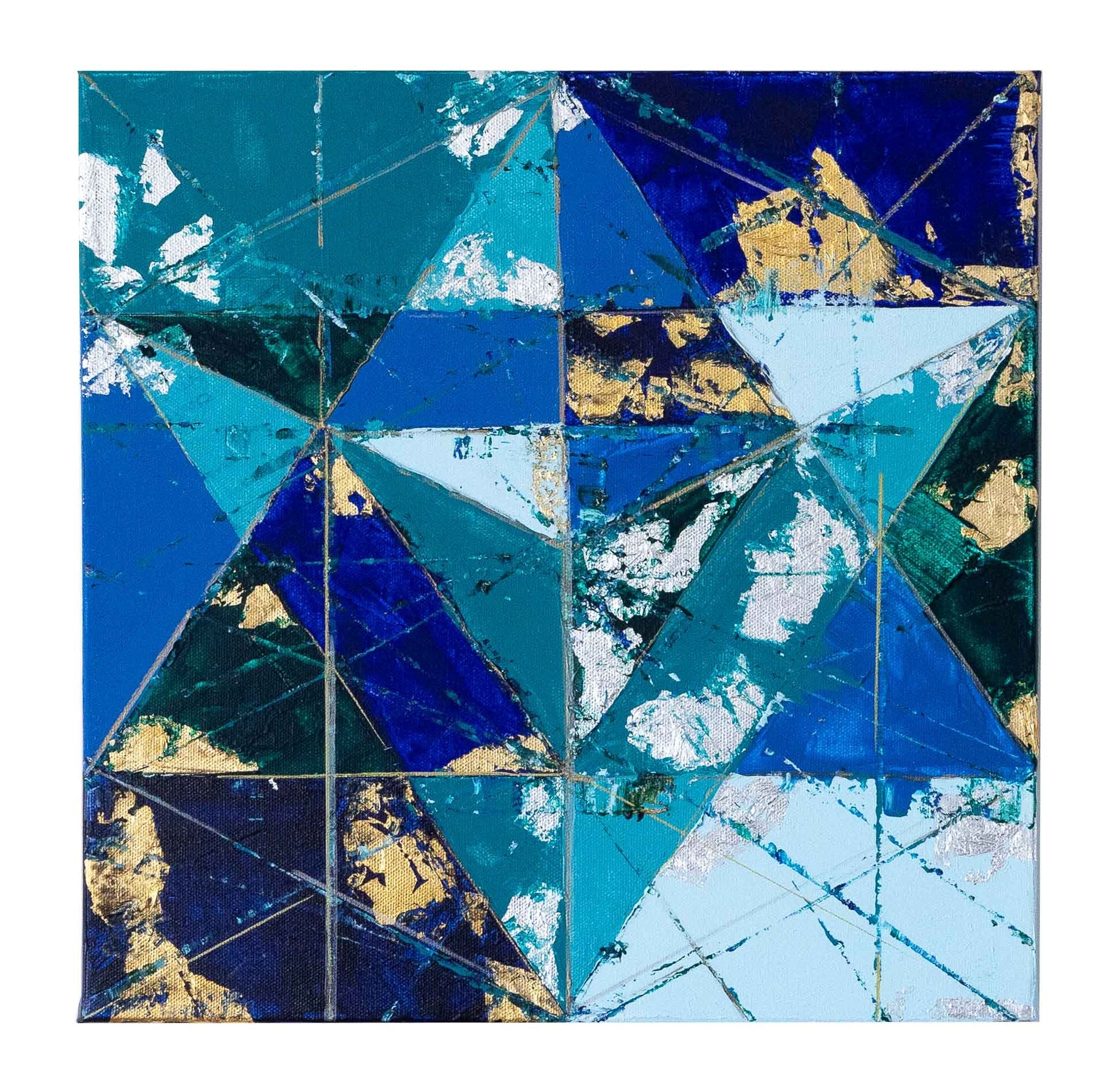 Attraverso la rotazione della forma originaria, il quadrato si trasforma generando triangoli e rombi, in una progressiva metamorfosi geometrica. Il viola, scelto come colore dominante, introduce una dimensione intuitiva e profonda, creando un dialogo tra struttura solida e percezione interiore.